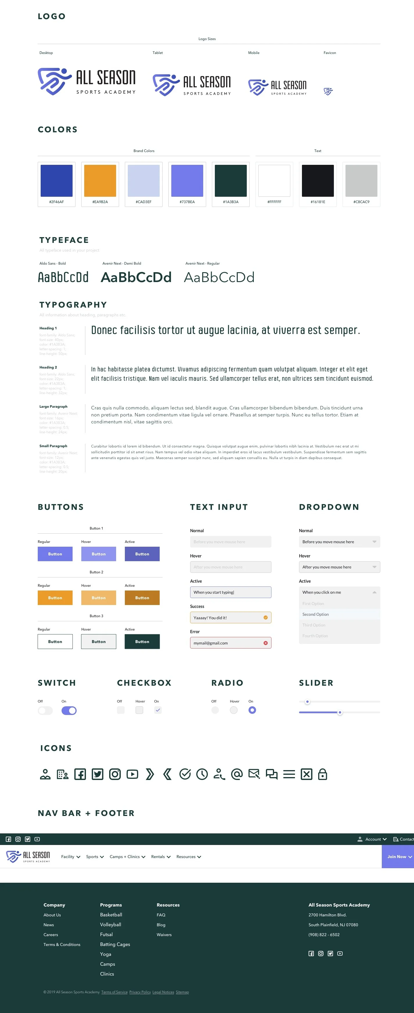 All Season Sports Academy is a 36,000 square foot indoor sports facility, located in South Plainfield, NJ providing 4 regulation size basketball courts, 5 volleyball courts, 4 futsal courts, 2 batting cages, a party room, a training/fitness room and much more. Their goal is to provide a quality facility for athletes of all ages to grow and develop their athletic abilities in a way that suits the individual best. While providing general infomation about their facility, All Season wants to let their users to be able to sign up for clinics, classes, provide online court reservations, through their website. They currently have a functional website however want to provide for a responsive experience to make these features easily accessible.