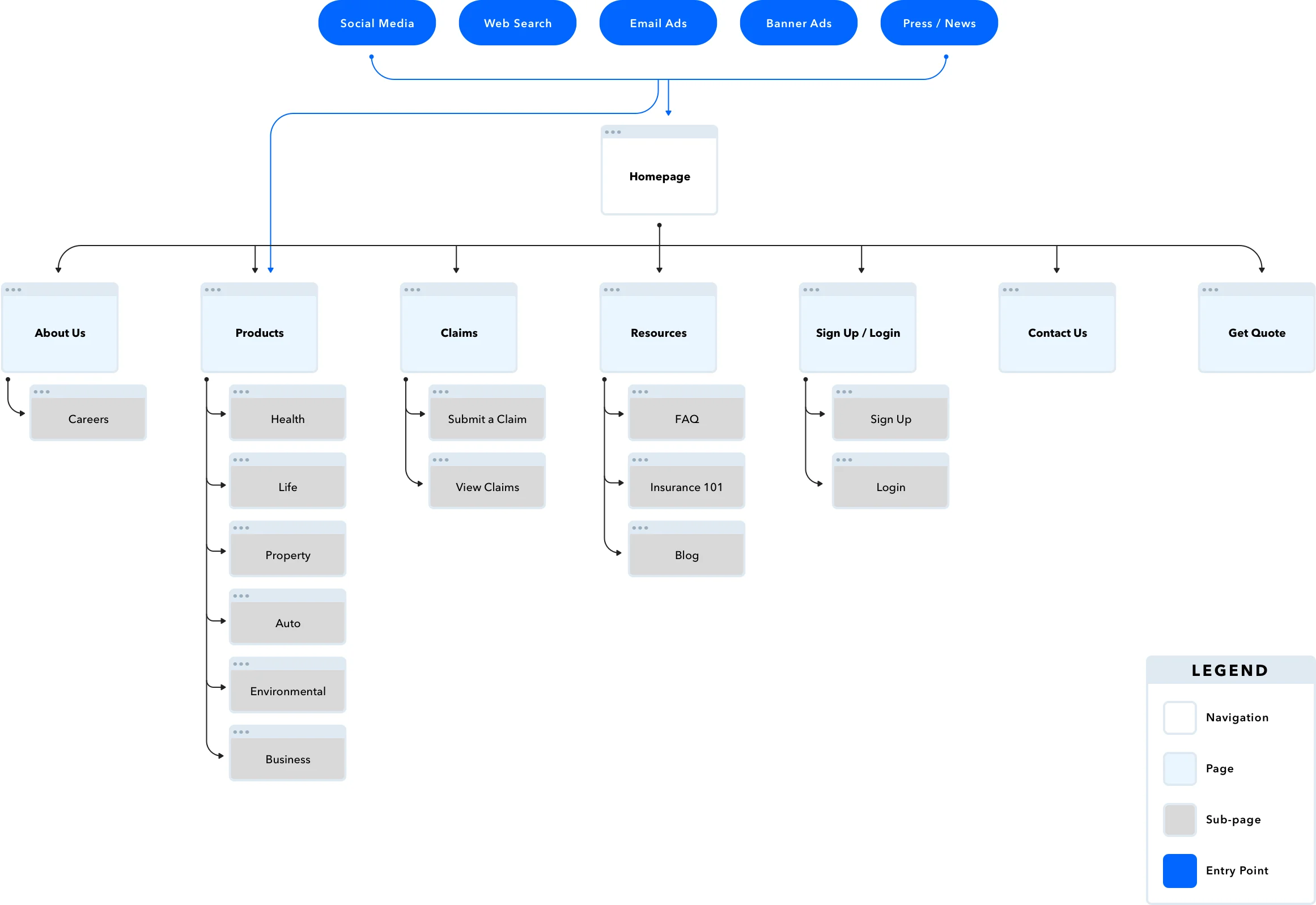 I designed this user flow diagram for Kaus to show the multiple entry points for a user to access the website.