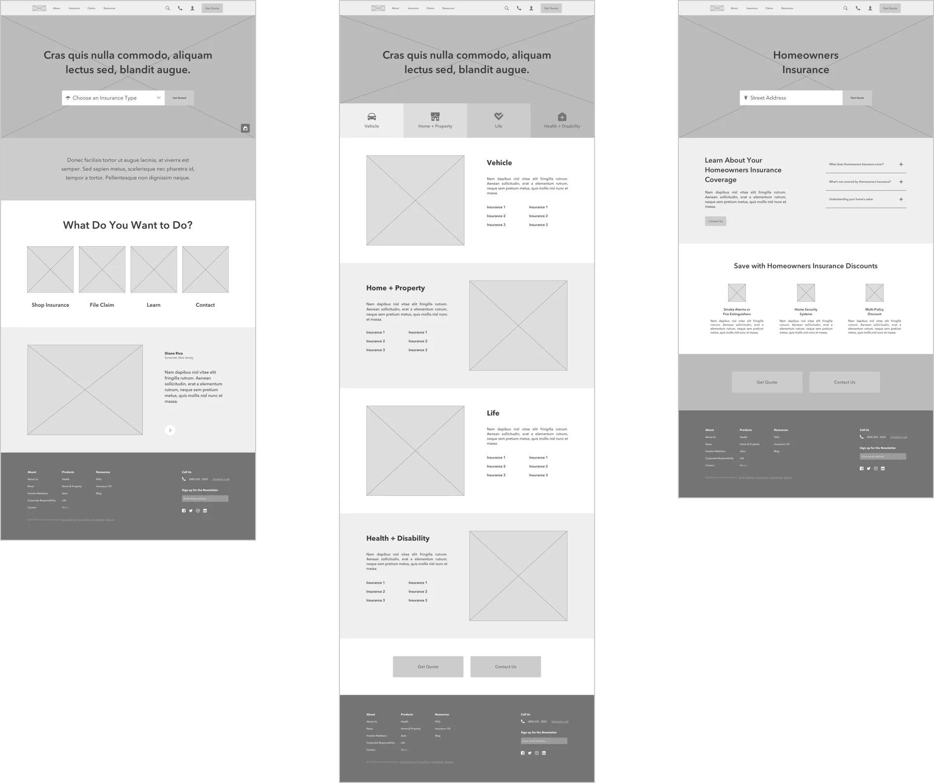 I created high fidelity prototypes of the Kaus homepage, Homeowners Insurance page, and the Resources page. Then used Invision to create an interactive prototype for usability testing.